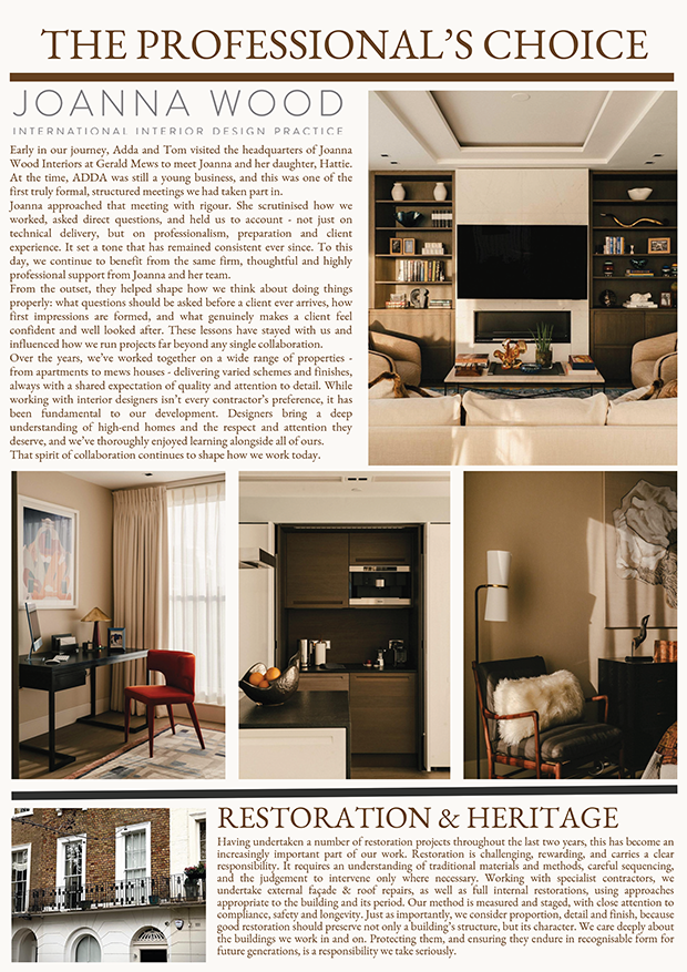 A key part of ADDA’s positioning is their ability to work seamlessly alongside architects and interior designers.